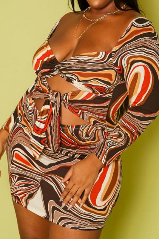 Plus Size Marble Pattern Tie Front Mini Dress